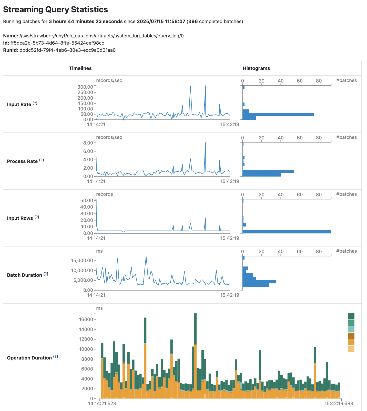 By clicking the Run ID value, you can view detailed statistics for a specific Streaming Query.