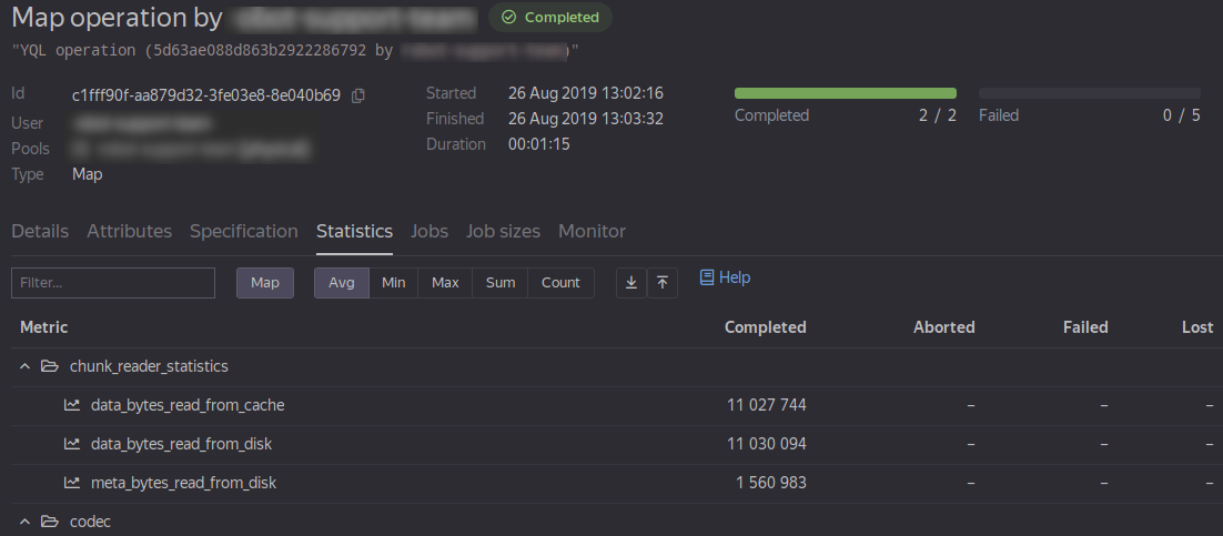 memory_limitстоит выбирать, опираясь на статистикуuser_job/max_memory; если используетсяtmpfs, то требуемый объемtmpfsнужно добавлять кuser_job/max_memory. При использовании автоматического заказаtmpfsв C++ и Python API, API сделает добавку автоматически; -